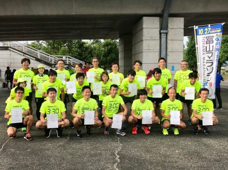 今年もペースランナーが蛍光色ウェアを着用し、頭に風船をつけて富山マラソンを走ります。ランナーの皆さんが、各々の目指している記録を達成できるようにサポートします。