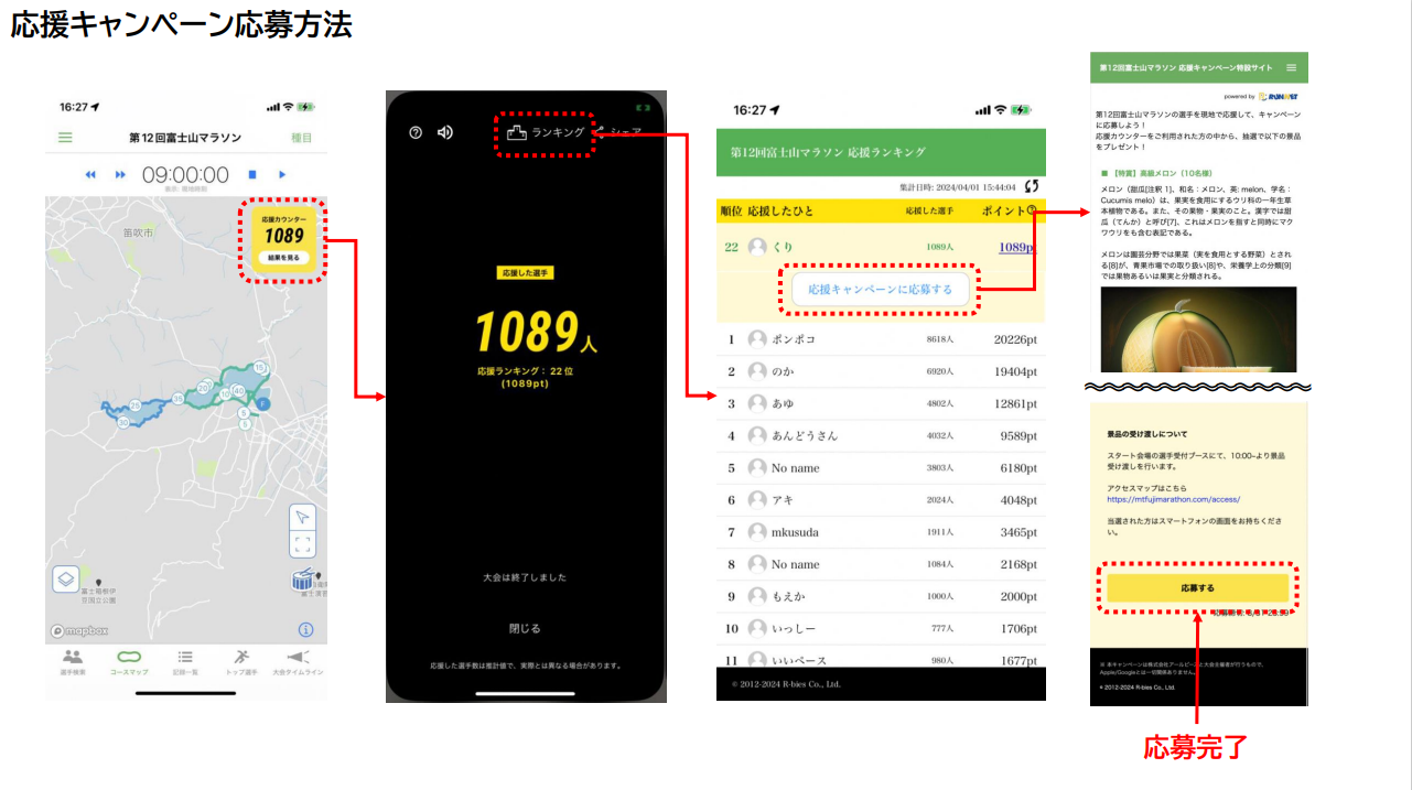 2.「応援カウンター」機能を使ってコース沿道で500人以上応援する