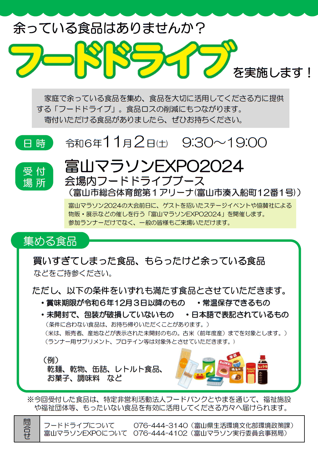 【今年も開催します!】富山マラソンEXPOでの「フードドライブ」実施のお知らせ