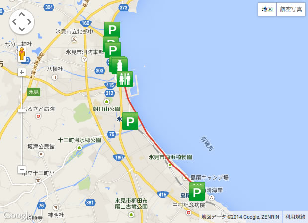 | 比美乃江公園スタート地点 | 住所:氷見市北大町 |