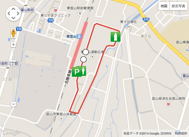 | スタート地点の最寄り施設 | 東富山体育館 住所:富山市米田16番地2 |