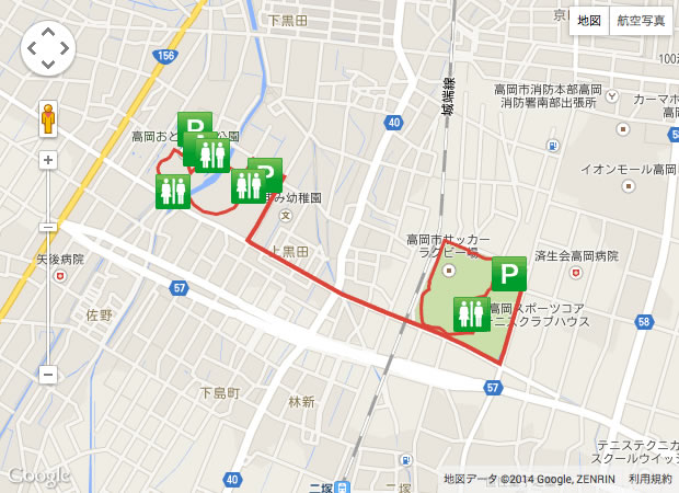 | スタート地点の最寄り施設 | 高岡スポーツコア管理事務所 住所:高岡市二塚428-1 電話:0766-20-1155 |