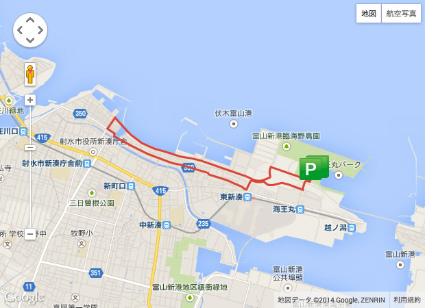 | スタート地点の最寄り施設 | (公財)伏木・富山港・海王丸財団 住所:射水市海王町8 電話:0766-82-5181 |